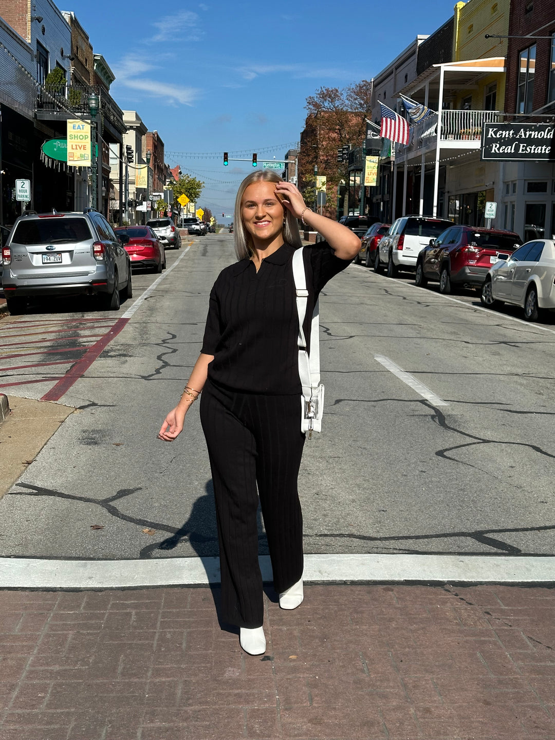 Collared Top Rib Sweater Pants Set