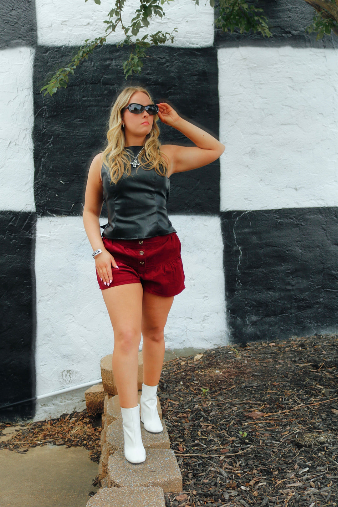 Colleen Checkered Denim Shorts