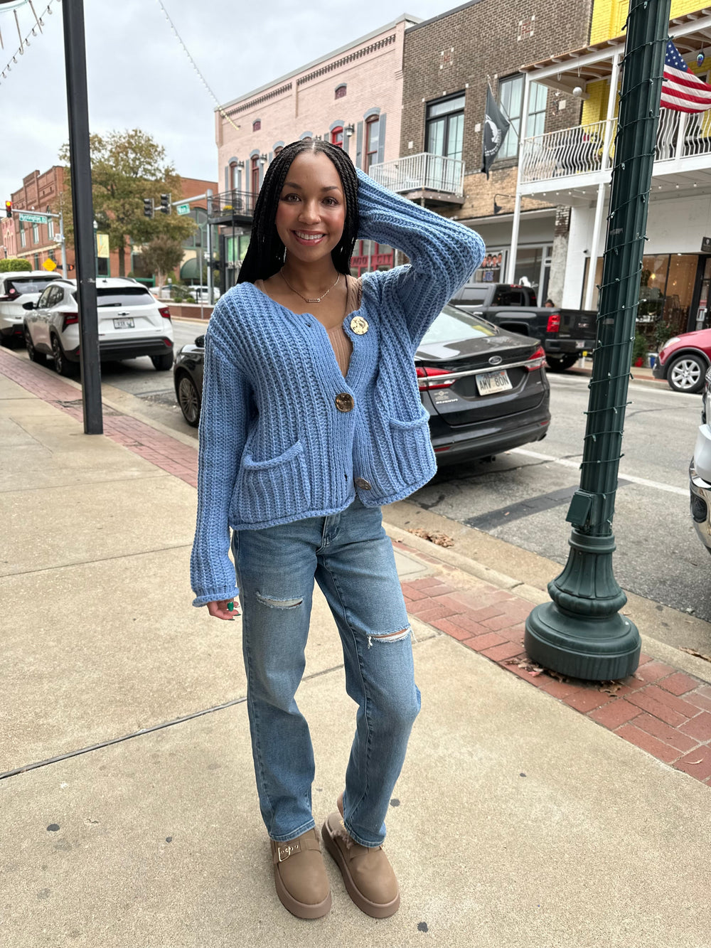 Long Sleeve Popcorn Sweater Cardigan With Pockets